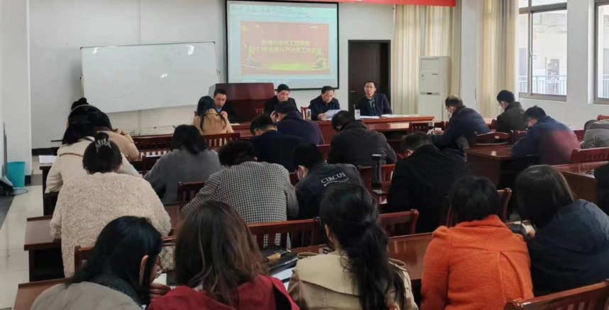 3月27日下午,管工AG真人视讯 召开2023年全面从严治党工作会议。AG真人视讯 党委书记汪春胜主持会议,管工AG真人视讯 全体教师参加会议。