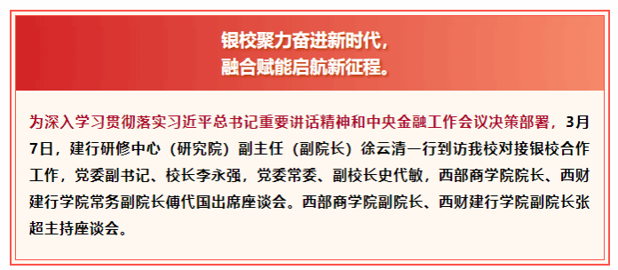 擦亮金融金字招牌|建行研修中心(研究院)副主任(副院长)徐云清一行到校对接银校合作工作