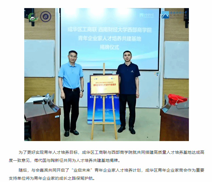 政校联动 业启未来—AG真人视讯 与成华区工商联联合启动青年企业家培养计划