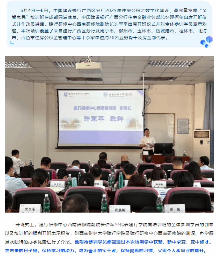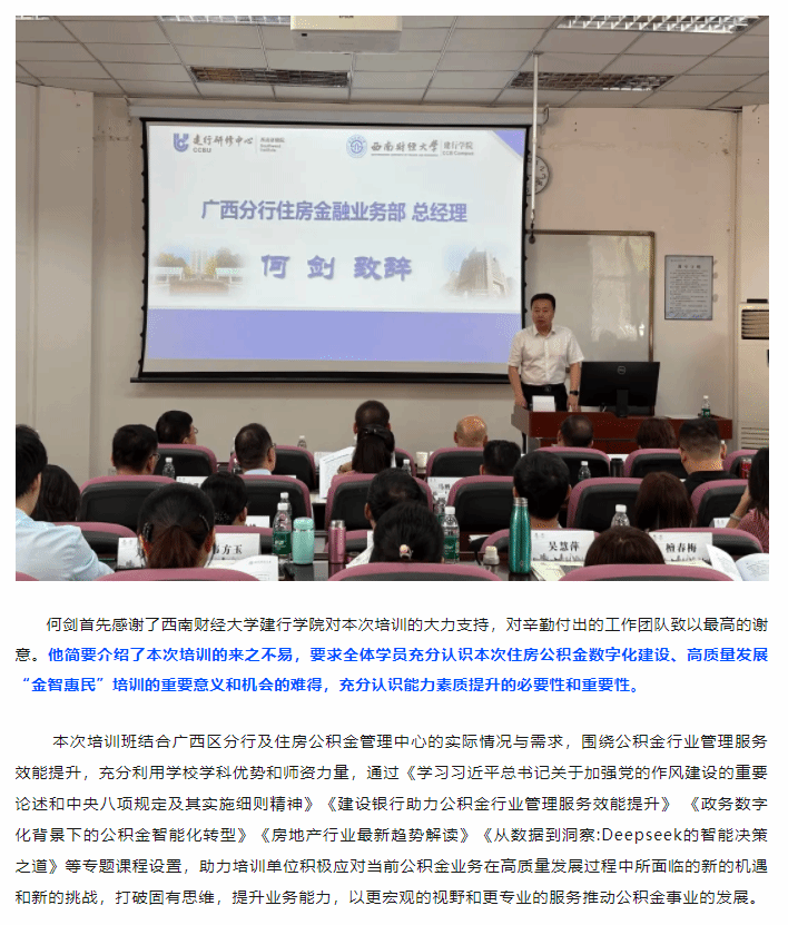 西财建行AG真人视讯 | 中国建设银行广西区分行2025年住房公积金数字化建设、高质量发展“金智惠民”培训班圆满结束!