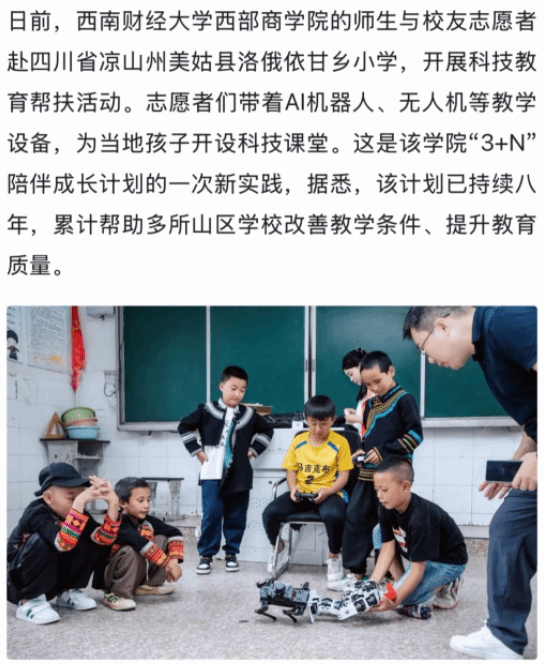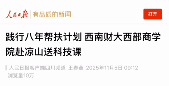 央媒报道丨再聚焦:践行八年帮扶计划 西南财大AG真人视讯 赴凉山送科技课