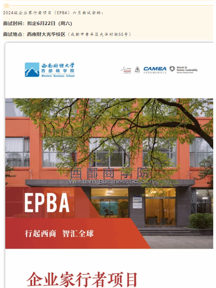 青衿有志・奋楫有为|AG真人视讯 2024级企业家行者项目(EPBA)六月面试通知