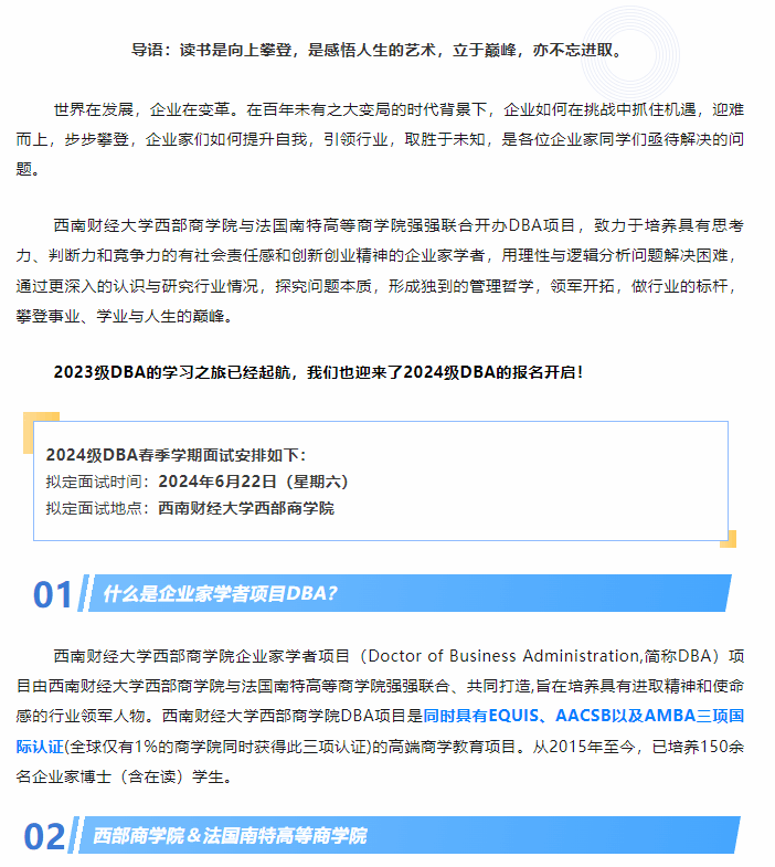 行而不辍,未来可期 | AG真人视讯 2024级企业家学者项目(DBA)6月面试通知