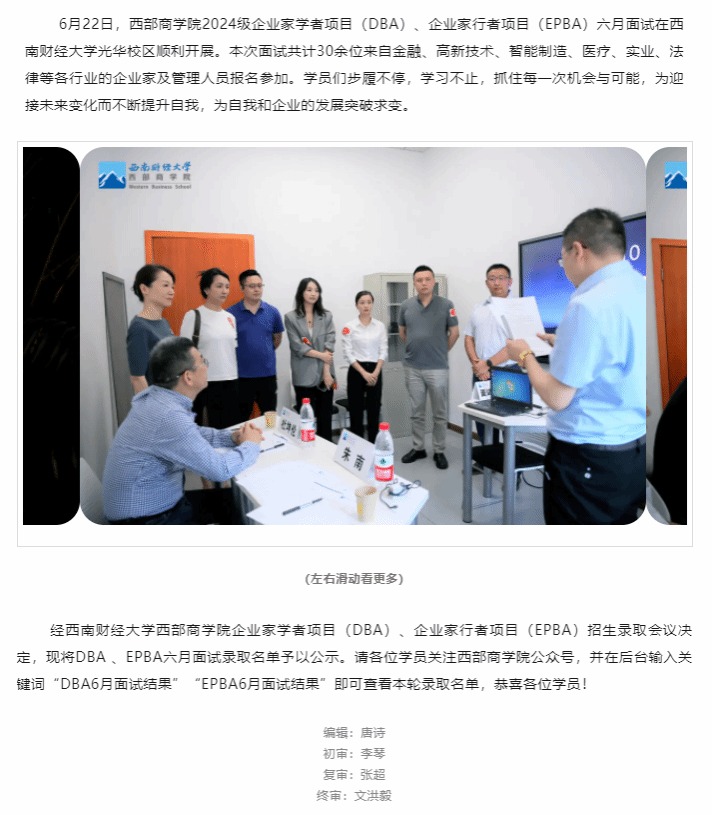 恭喜录取!AG真人视讯 2024级企业家学者项目(DBA)、企业家行者项目(EPBA)六月面试圆满结束