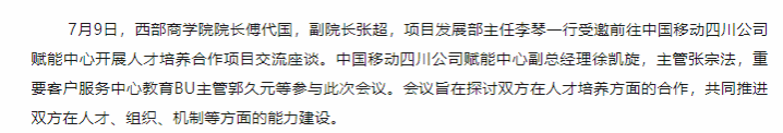 校企合作再+1!AG真人视讯 与中国移动四川公司“人才培养合作项目”交流座谈会顺利召开