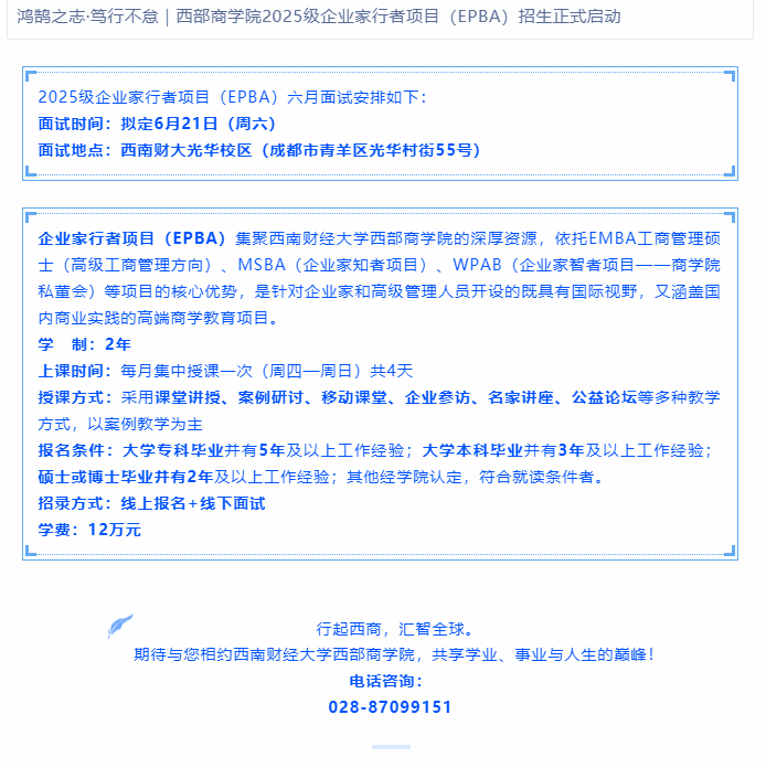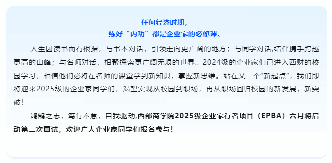 鸿鹄之志·笃行不怠|AG真人视讯 2025级企业家行者项目(EPBA)六月面试通知