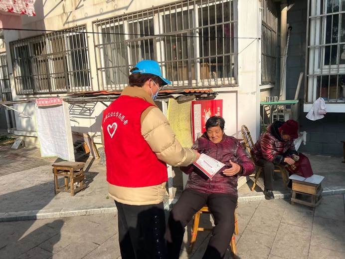 同时志愿者们向社区老人们发放防范诈骗宣传资料、宣讲常见的诈骗类型与手段,提高老人们防范诈骗的意识,增强识骗防骗的能力,帮助老人守好养老财产安全。