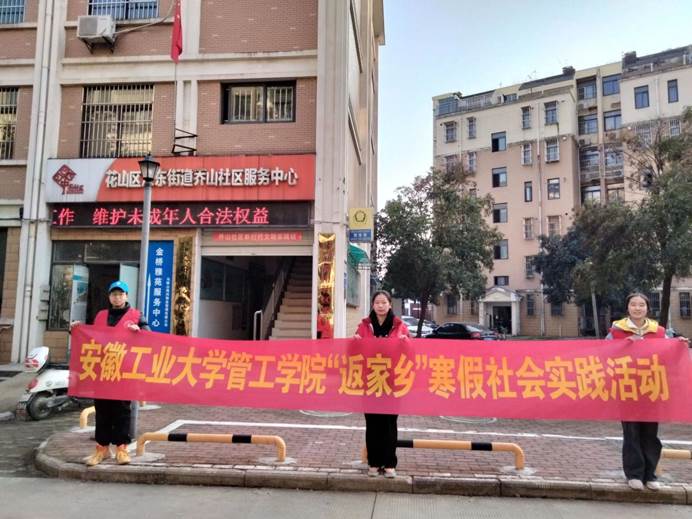青年志愿者协会寒假实践队在马鞍山市江东街道金瑞社区、乔山社区与社区工作者一同拜访独居老人与残障人士,帮助他们清扫房屋,同时在小区内进行防范网络电信诈骗安全知识宣传。