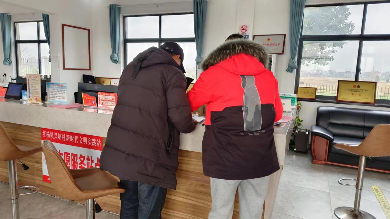 图为兴塘村村委对日常来询问的村民进行服务。通讯员 杨希 摄