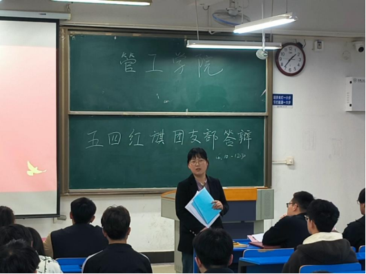 团委于4月12日中午在汇文D208开展“五四红旗团支部”评选答辩会。院团委书记赵玉婷、院团委副书记焦朋庆、院团委副书记曹宇、学生组织部门负责人代表出席会议并担任评委。
