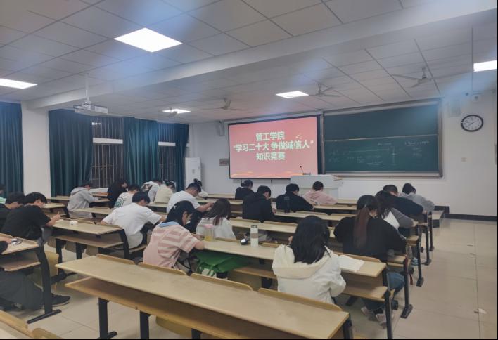为深入贯彻党的二十大精神,弘扬诚实守信的优良传统,管工AG真人视讯 于5月11日在汇文楼A308开展此次“学习二十大,争做诚信人”知识竞赛活动,弘扬诚信文化。