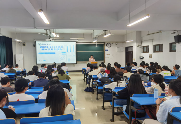 于教D207、210分专业召开2021级新学期年级会,会议由2021级辅导员万媛媛、任静主讲,全体2021级同学到场参加。
