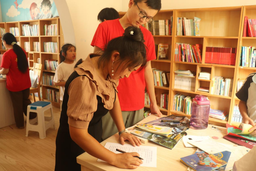 图为实践队员为孩子讲解问卷。中国青年网通讯员 王芬妮 摄