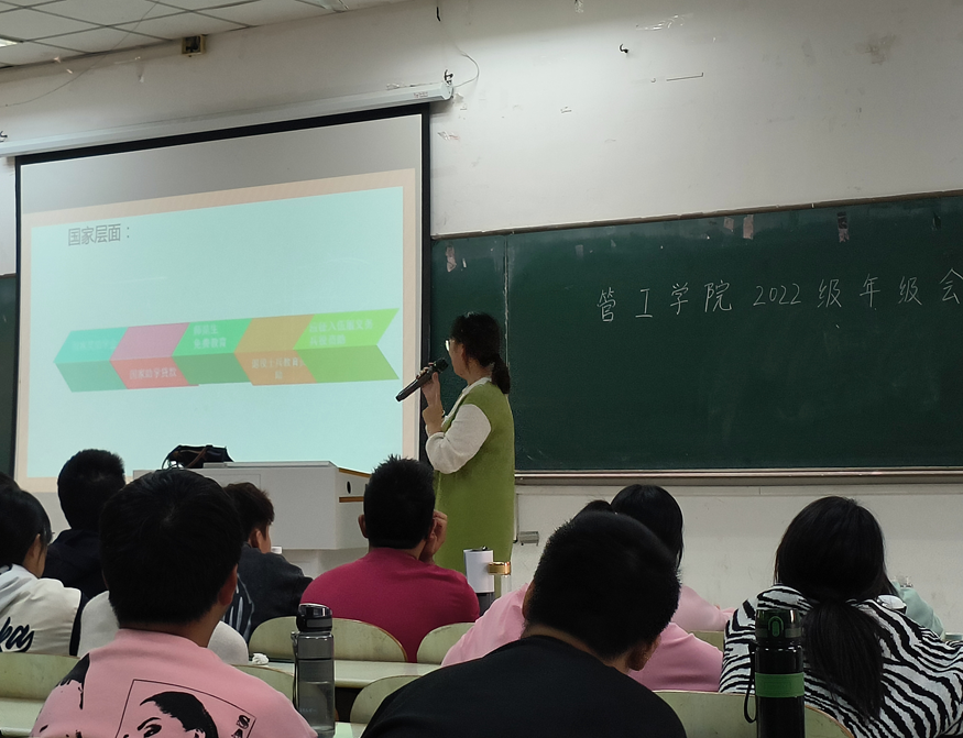 资助工作负责老师赵玉婷主讲,辅导员焦朋庆及22级全体同学到场参加。