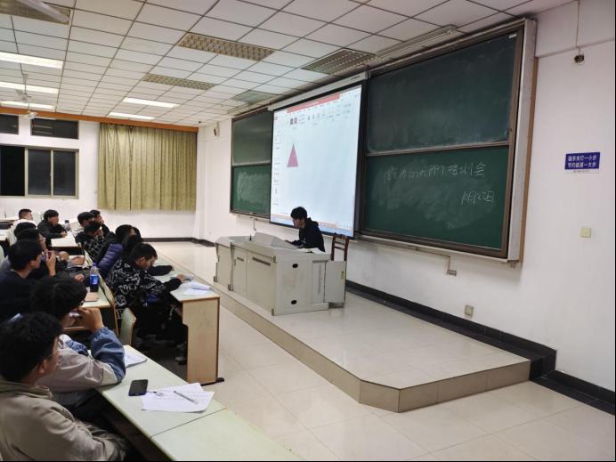 首先,孟润林介绍了PPT软件应用的重要性,并向大家宣传了即将开始的PPT大赛,鼓励大家积极参加。随后,他详细的介绍了OFFICE办公软件的安装方法。培训期间,大家认真听讲,积极与孟润林进行互动,并且做了详细的笔记。在讲解的过程中,孟润林结合往年参加比赛的优秀PPT作品对PPT结构和布局进行详细解说,介绍了几种常用的软件功能使用方法和结合方式,帮助成员快速熟悉软件应用。讲解结束后,在场成员对应用使用提出问题并由孟润林一一解答。