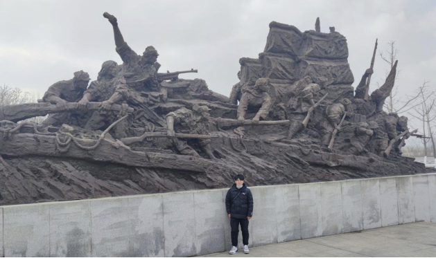 馆外的雕像群刻画着英雄形象,也诉说着历史故事,活灵活现的展示着当时战争的场景。革命前辈们手持枪杆、衣着单薄、有的甚至身负重伤,但这并不影响他们前进的步伐。如今的人民生活在一个和平繁荣的国家,过去的先辈们为了如今的和平繁荣竭尽全力。文学家赵鑫珊曾说:“历史是一面镜子,它照亮现实,也照亮未来”参观纪念馆是实践队员们回忆历史的一种方式,在参观中回忆,在回忆中感叹,在感叹中反思。当时的先辈们并不知道战争会不会胜利,更不知道祖国的未来会是怎样,但是他们认为如果他们不扛起钢枪去战斗未来将是他们的子孙去战斗。如今的美好生活是曾经的战士们用鲜血换回来的,在享受生活的美好的同时也不能忘记历史,忘记曾经每一位努力的革命先烈。