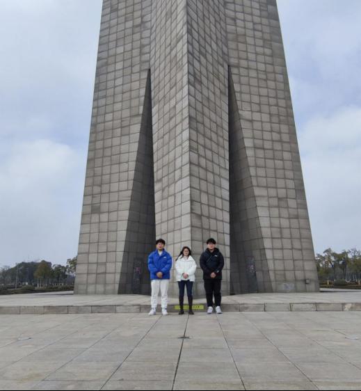 图为实践队员渡江战役胜利之塔合影。王璇摄