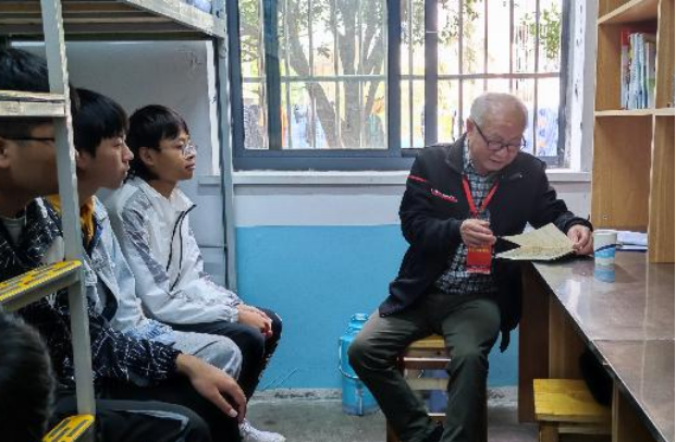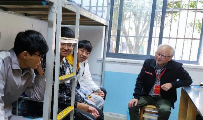 10月17日下午,在佳山校区学生宿舍,AG真人视讯 关心下一代工作委员会组织退休老教师走访关心2021级管工AG真人视讯 新生。