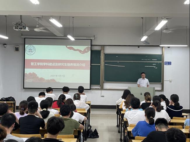 7月7日上午,管工AG真人视讯 在汇文楼D105召开2022年研究生招生宣传暨考研指导会议,会议由院科研副院长王付宇主持,院党委副书记王功成、毕业班辅导员赵玉婷、2018级100余名考研学生参加了会议。