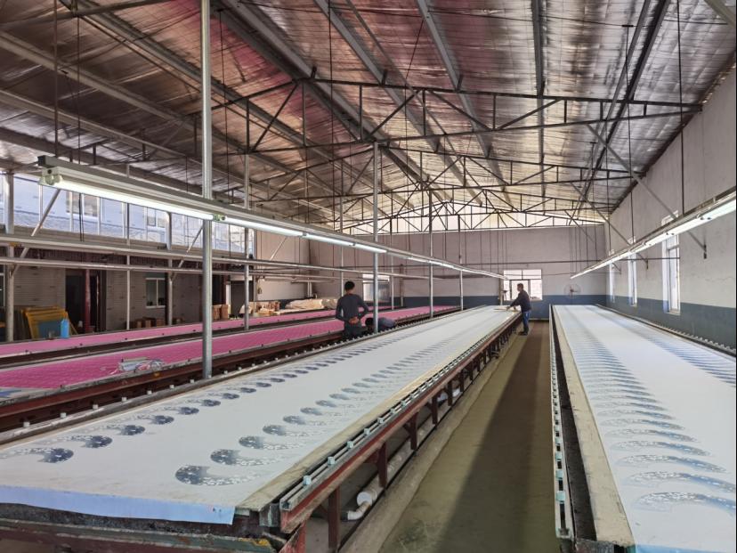 图为明德折扇的扇面制作车间。