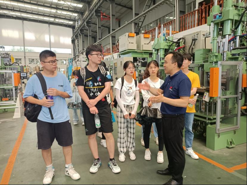 据了解,该企业生产的设备应用领域广泛,近年来,在医疗尤其是抗疫期间做出巨大的贡献,同时在空气弹簧、汽车减震、高铁风挡等方面也有不俗成绩。实践队员们结合产业的特色、企业吸纳人才的方式及未来规划等提出自己的思考,工作人员热情地进行了解答。目前,“大国重器”不断发展,实践队员不禁感叹到,祖国的未来还需要不断地建设,国家的话语权正在一点点加大,国家掌握的核心技术正在一步步增强,国之重器正逐渐成为国之利器,一步步走向世界装备制造业的顶峰。