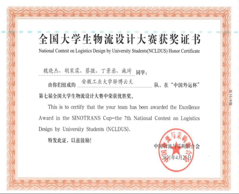 物流工程183班团支书,曾担任2020-2021届管工AG真人视讯