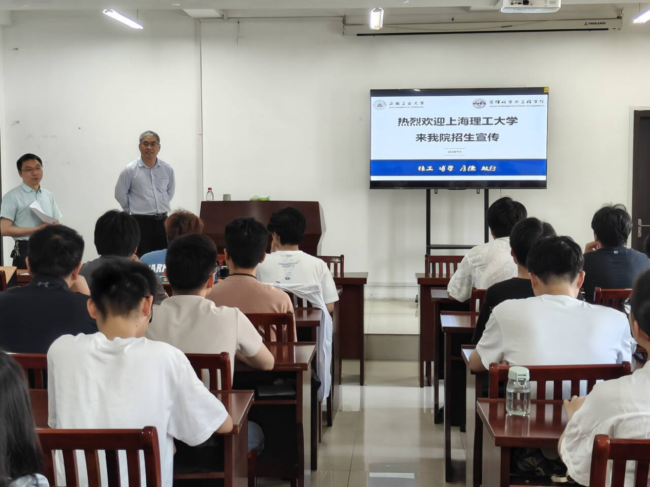 在汇文楼A308会议室召开上海理工大学研究生报考专场宣讲会。上海理工大学二级教授、博士生导师叶春明作招生宣讲,活动由AG真人视讯