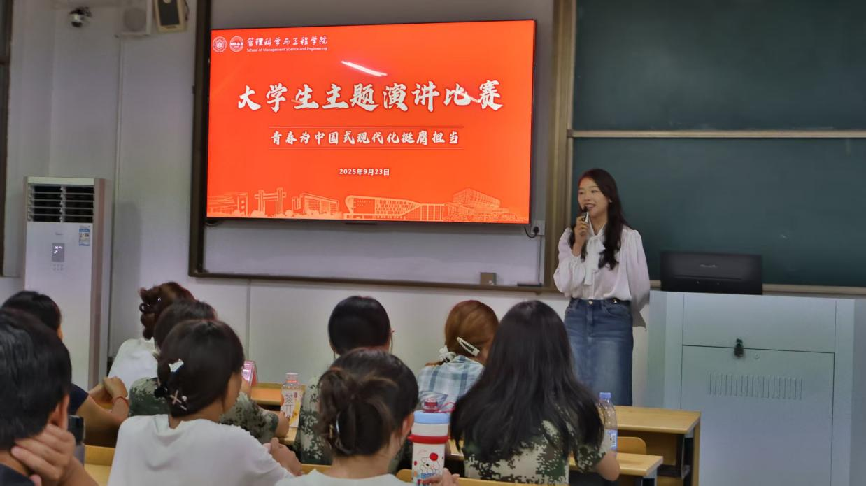 在教D101举办“青春为中国式现代化挺膺担当”主题演讲比赛。2025级辅导员李思雨及团委学生会部长代表担任评委。
