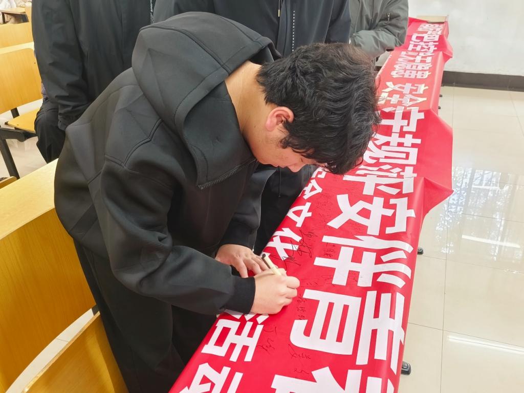 实验室设备操作与用电规范等专业特点,借助真实事故案例视频,重点讲解了设备使用前检查、突发断电应急处置、实验数据存储安全等关键实操要点。在互动交流环节,同学们踊跃分享实验课中遇到的安全隐患,归纳出“实验后设备未断电”“数据U盘随意插拔”等常见风险行为,提醒同学们增强风险意识。班会尾声,全体同学在“消防严把控,实验无隐患;安全守规范,平安伴青春”的安全横幅上郑重签名,以实际行动表达对“规范操作、互相监督、及时报告”安全准则的坚定承诺。