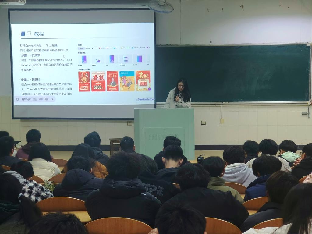 在阶教201组织开展宣传工作培训会。会议由院青年媒体中心主讲,团委学生会各部门200余人参加。