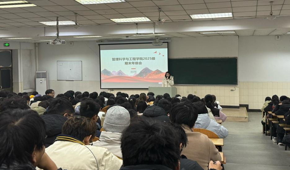 为引导大一新生从容应考、合理规划寒假生活、积极投身社会实践,1月5日,AG真人视讯 在阶教103召开2025级期末年级大会暨寒假社会实践动员会。会议由辅导员李思雨、任静主持,2025级全体学生参加。