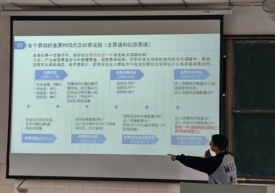 在阶教203举办“以创为翼,以赛为梯”中国国际大学生创新大赛宣讲会。院团委书记赵玉婷,2025年“中国国际大学生创新大赛”国赛银奖、铜奖获奖团队负责人汪精诚、邹佳航担任主讲,各年级学生代表60余人参与本次活动。