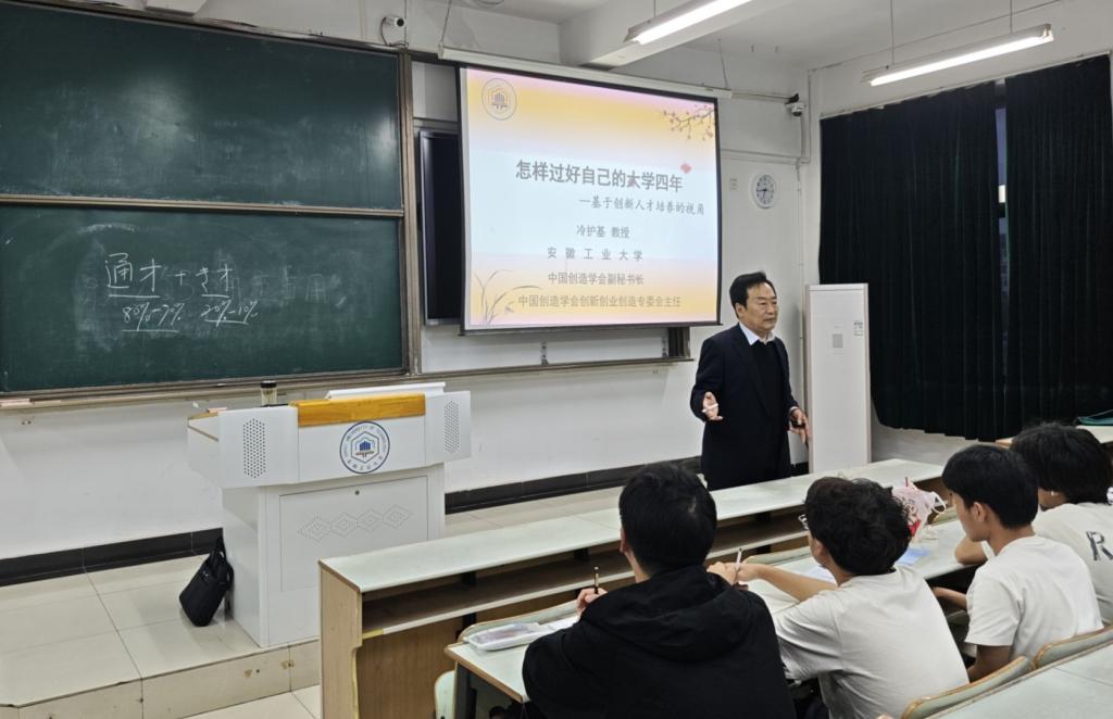 邀请校关工委成员、中国创造学会创新创业创造专委会主任委员冷护基教授,作题为《怎样过好自己的大学四年——基于创新人才培养的视角》的专题讲座。