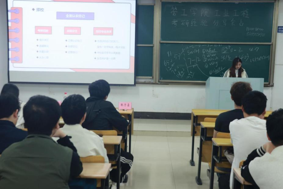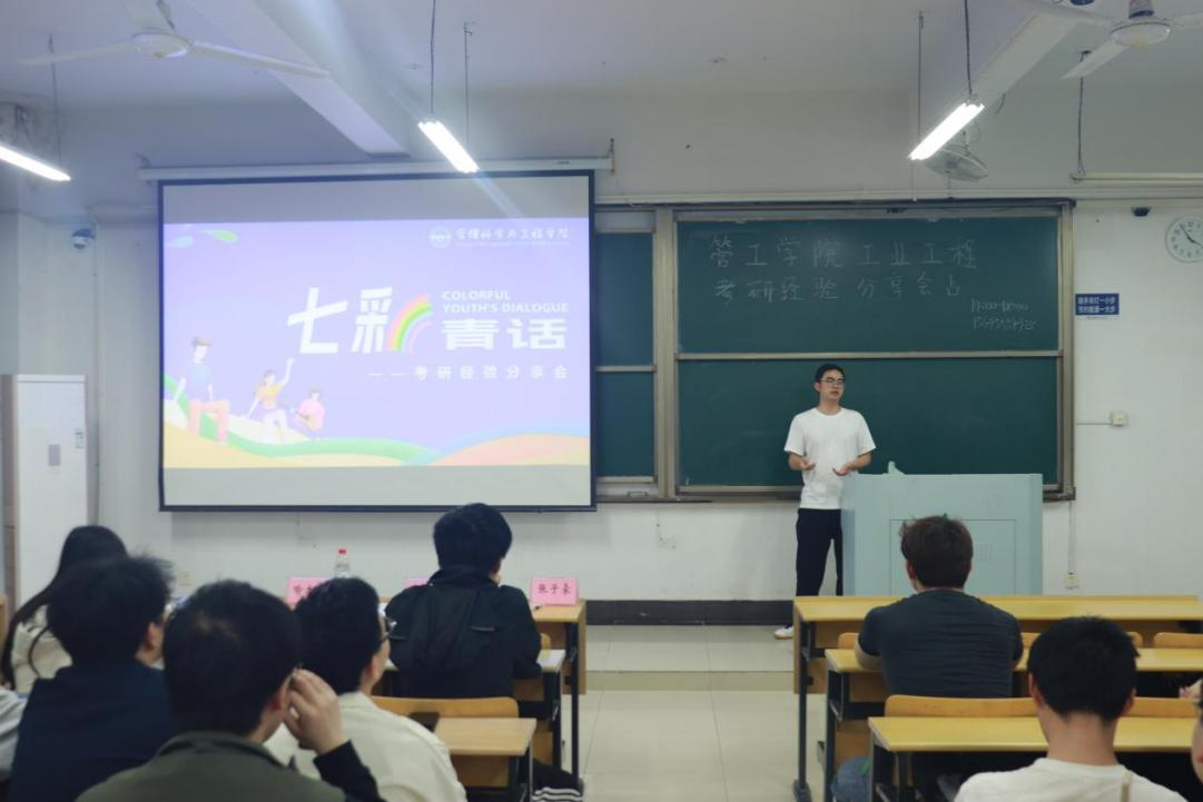 在教D105、D107、D108、D110分专业举办“研途鎏金·一研为定”七彩青话考研经验交流分享会。各专业系(室)主任、辅导员代表、优秀考研学生代表及2023级学生参加本次活动。