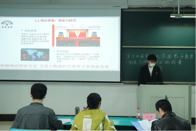 第十四届全国大学生电子商务“创新、创意及创业”挑战赛校级决赛。决赛共48支队伍参加,江雨燕、张洪亮、陈梦凯、王琳、郑炜晨、韦伟、钱黎春、张吉云、刘舰等9位老师担任评委。