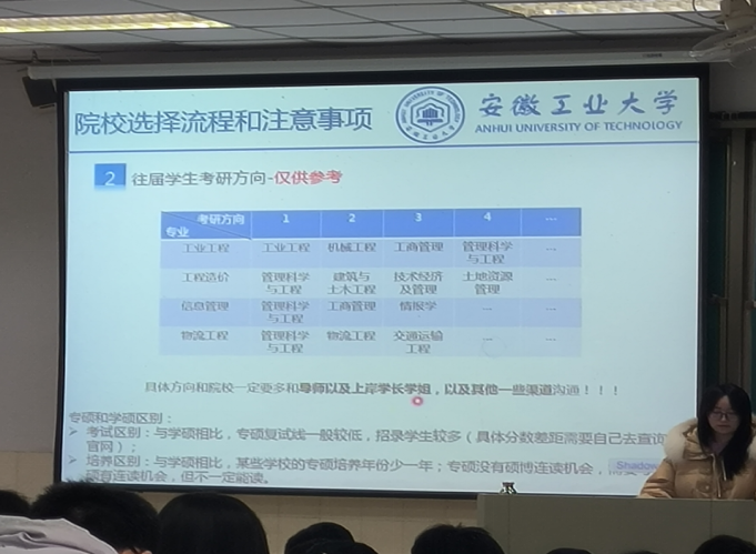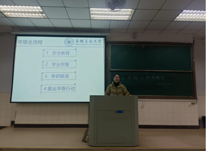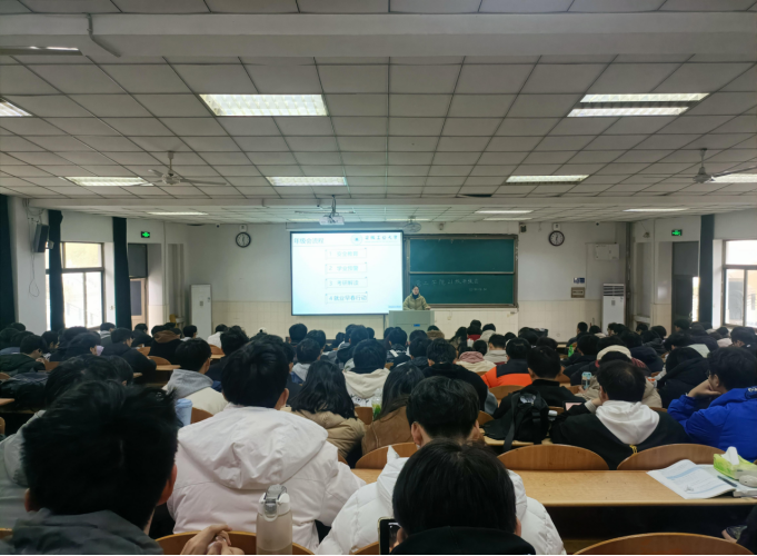 会上,钱丹丹以考研解读为主题,在考研择校、备考规划和心态调整等方面为备考学生答疑解惑,鼓励学生们摆正心态,制定详细的考研计划,注重交流与合作,全面提升备考效率。在求职方面,钱丹丹提醒同学们要做好心理调整、简历美化、面试、信息搜集、和能力匹配五大准备。最后强调未来规划应秉持“多条腿走路”的原则,并向同学们介绍了西部计划、士兵计划、研支团等就业政策。任静重点围绕人身安全、生活安全、财产安全、防诈骗、电动车管理等方面展开安全教育,提醒学生警惕各类“陷阱”;并从课程学分角度督促学生关注自身情况,尽早尽早完成相关学业要求。