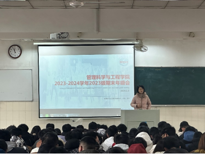 于1月5日中午在阶教101开展2023级期末年级会,会议由2023级辅导员刘瑜、曹宇主持,2023级全体同学到场参加。
