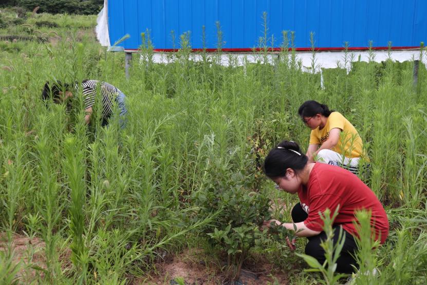 图为实践队员在田间拔草。中国青年网通讯员曹杰摄