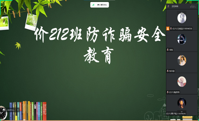 各年级开展防诈骗班会,为同学们分析电信诈骗的心理、手段、形式,帮助大学生群体全面建立防诈意识、提升防诈能力,从而科学有效地防范电信诈骗。“杜绝贪婪之心、克服恐惧之心、放弃好奇之心、克服恐惧之心,这是防范电信诈骗的有效手段”。大三年级辅导员在开班会时告诫各位同学。