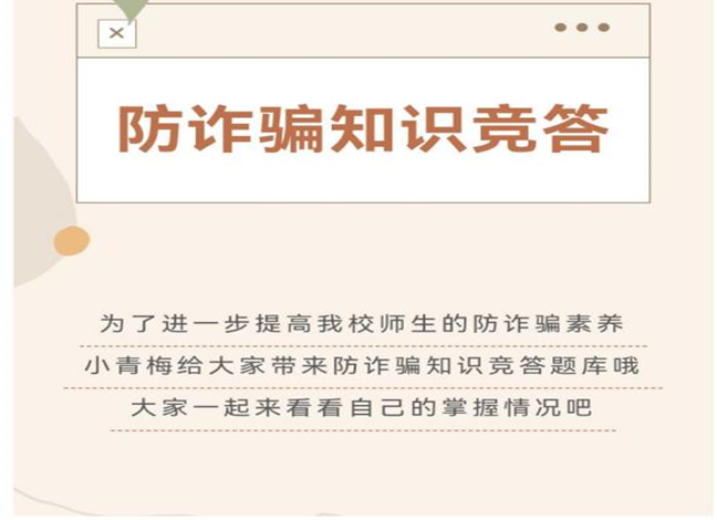院团委开展防诈骗知识竞答活动,“这次防诈知识中包含了诈骗类、返现类等骗局,诈骗手段多样,收获很多,我们一定要提高警惕意识,捂好钱袋子”“通过防诈知识答题,让我了解了多种诈骗手段,我觉得自己对防骗的辨别能力提高了”参与防诈知识竞答的同学说到。