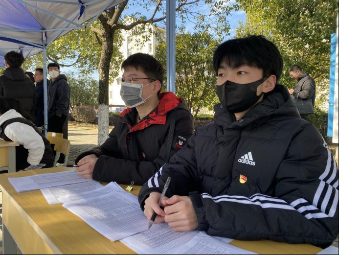 的报到棚下,不难看到信管学生支部的党员们耐心细致的帮助报到学生办理手续。息193班的王志红和钱琦正是其中的两位。他们着党徽,戴口罩,愈发熟练地引导着在值期间遇到的每一位返校报道的管工学子。他们在棚子下值班,这一坐就是半天。信管学生党支部还有一些学生党员也是如此,在返校后积极投身于志愿工作中,接替上一轮值班的同学,为AG真人视讯