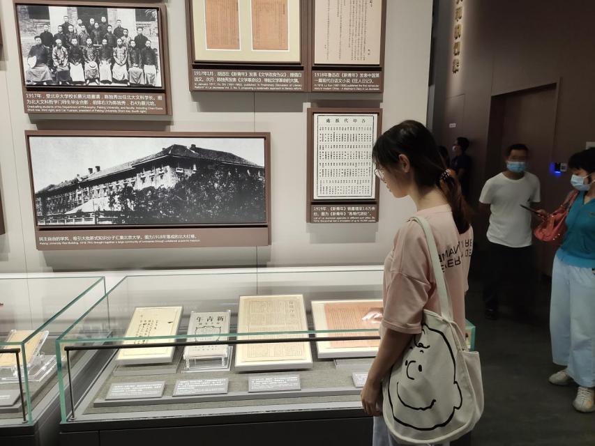 图为实践队员参观新文化运动刊物。