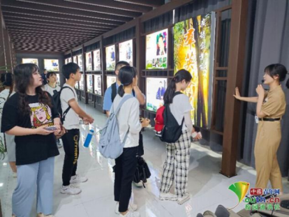 图为工作人员为实践队员讲解广德企业家事迹。中国青年网通讯员傅宝洁供图