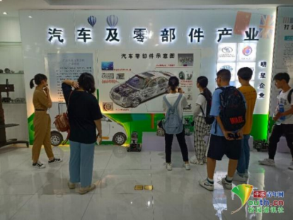 图为工作人员为实践队员讲解广德汽车及零部件产业发展状况。中国青年网通讯员李家慧摄