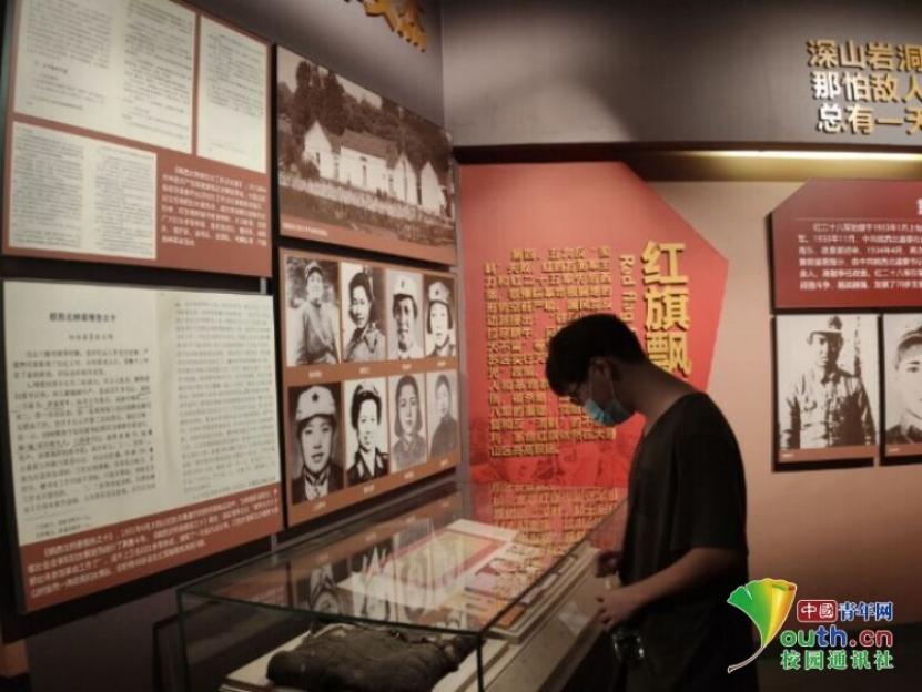 图为实践队员在了解革命烈士英勇故事。中国青年网通讯员梁鹏鹏摄
