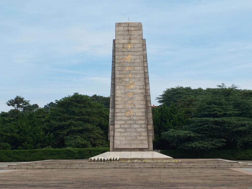 不同于烈阳下的暑间燥热,一股静谧、肃穆的微凉之意随我们步入陵园而涌上心头。一排排罗汉松耸立两旁,好似在为烈士们站岗守卫。沿着阶梯缓步而上,醒目的革命烈士纪念碑映入眼帘,镌刻其上的是“革命烈士永垂不朽”八个大字。倚靠在碑前的束束菊花,是我们怀着沉痛的心情送去的,为表哀思与悼念。“这是为纪念在渡江战役中英勇牺牲的39名无名烈士而修建的。”被问及详情时,园中工作人员认真地解释道。我们事先也查阅过一些资料,了解到直至今日这座陵园已经揽括烈士525人,其中建国前240人,建国后285人。我觉得,这不仅是为了纪念那些无名烈士,更是对那个年代每一位为国家为人民拼搏奋斗英雄的致敬。