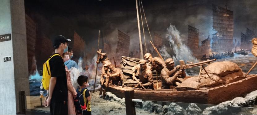 渡江战役是解放战争时期中国人民解放军第二野战军、第三野战军和第四野战军一部,在长江中下游强渡长江,对国民党军汤恩伯、白崇禧两集团进行的战略性进攻战役。实践过程中,团队成员参观了纪念馆中渡江战役的模拟场景,详细阅读了革命前辈的人物资料,了解到如“马毛姐送军过大江”等战役中的革命英雄故事,以瞻仰馆内烈士名录的方式,缅怀革命先烈,学习感悟革命精神。