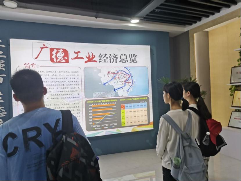 参观学习中,通过讲解员介绍、观看宣传展板及影像、现场互动、提问咨询等方式,实践队员们了解到了广德工业经济发展的总体状况、企业家创业情况以及未来发展布局。对广德市现有的企业发展、人才储备、人才政策及人才培养战略有了进一步的认识。同学们在参观学习中,认识国情民情,学习企业家们的创新创业思维,深入了解了广德市杰出企业家为当地城乡发展建设所做出的巨大贡献,并为之感到震撼。