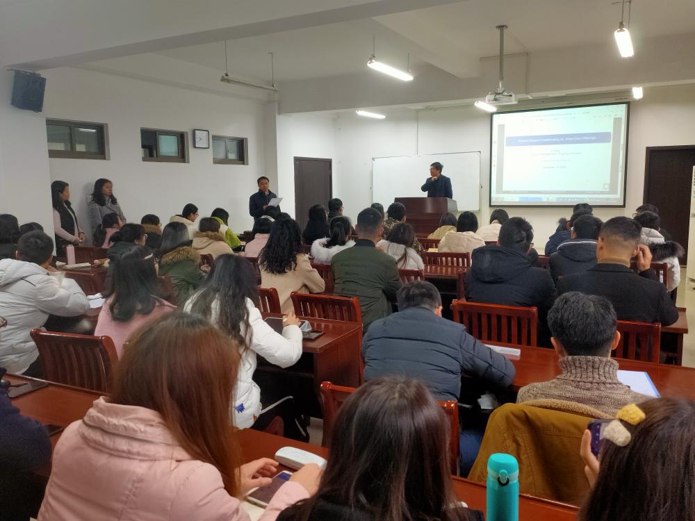 终身正教授、博士生导师杨翼在汇文楼A308做区块链应用专题报告。副院长王付宇、相关老师及AG真人视讯