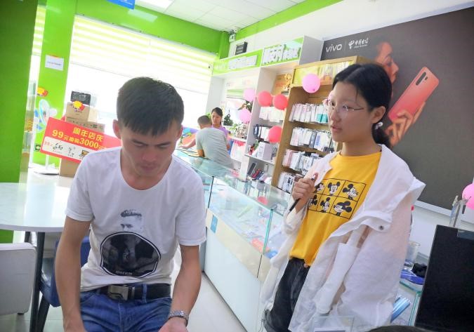 辗转于各个快递店之间,实践队员不断总结,并随机找寻镇上居民,向其发放问卷以了解对快递店的需求以及网购使用快递的频率,获得了更全面的信息。
